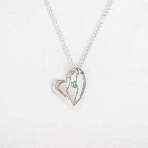 The pendant holds a semi-precious blue or white crystal.