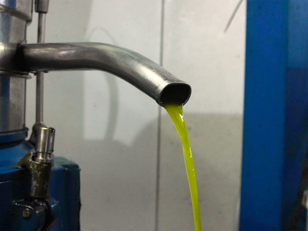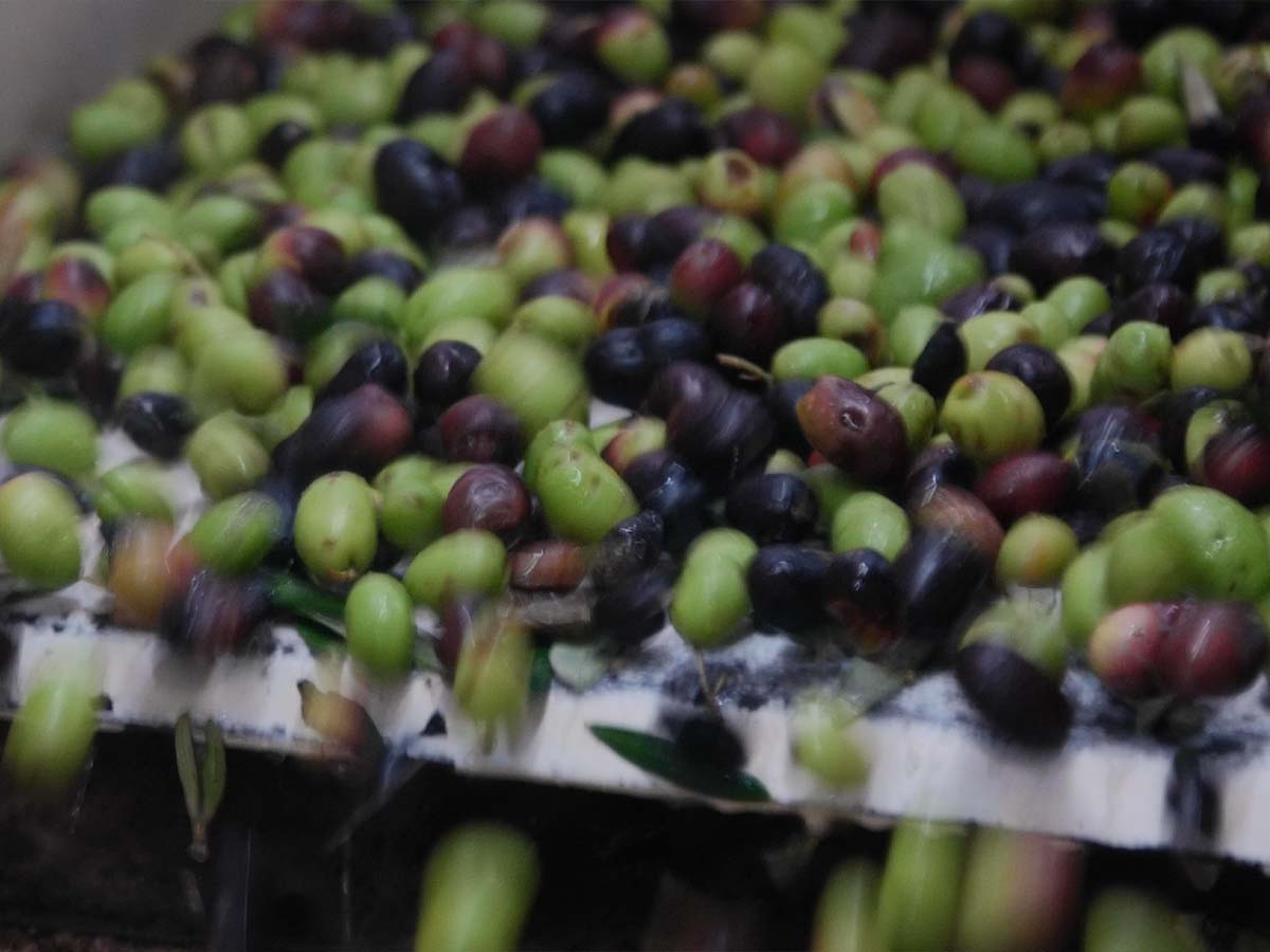 The olives are taken straight from the trees to the press where they are separated from any leaves, washed, and then cold pressed.