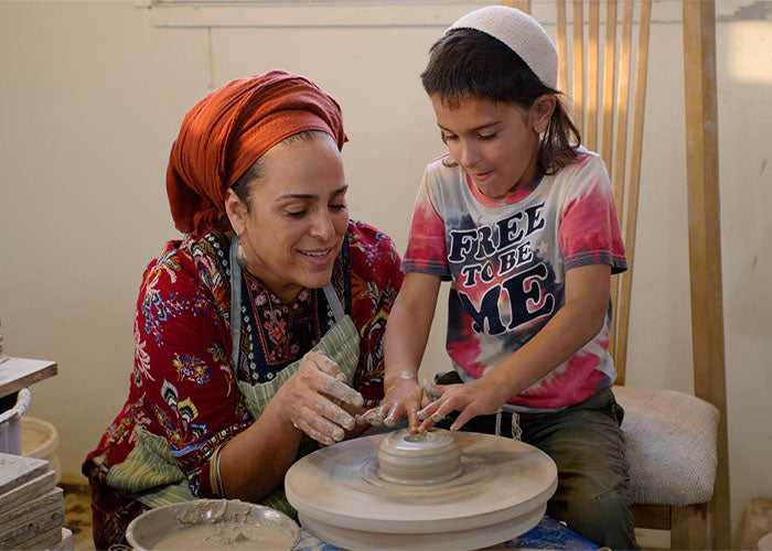 Batya and Baruch met in Jerusalem. He was from Michigan, she was from San Diego, California. Now some 20 years later, along with 6 children, they are living in the beautiful settlement of Itamar. Baruch is a musician and tour-guide while his wife Batya works creating ceramics.